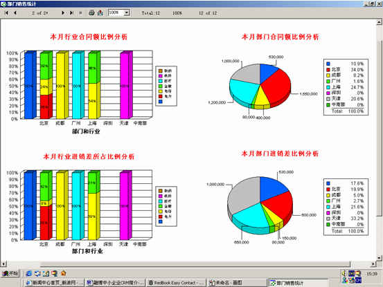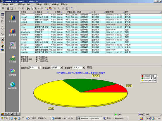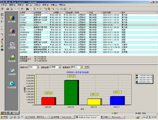 可對(duì)客戶(雇員)合同,根據(jù)合同階段、月份、合同金額、合同應(yīng)收應(yīng)付款、采購(gòu)成本、客戶、銷(xiāo)售人員等條件進(jìn)行查詢和統(tǒng)計(jì),