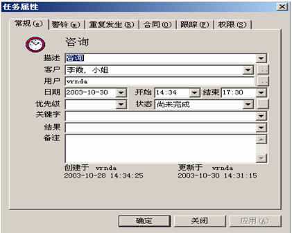 對(duì)與客戶進(jìn)行的活動(dòng)可進(jìn)行任務(wù)跟蹤和警鈴提醒。