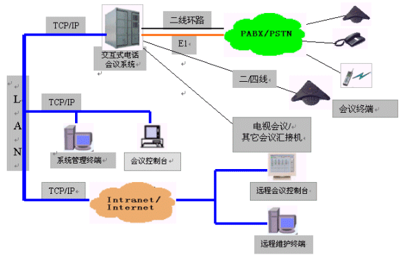 · 本系統(tǒng)提供二/四線專線、二線用戶及與電視會議/其它會議匯接機(jī)的接口。