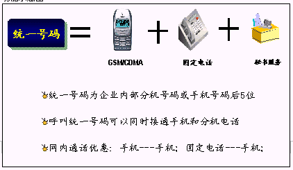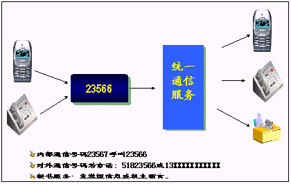 鐵路內(nèi)部員工可以統(tǒng)一所有的通信工具,只使用一個(gè)號(hào)碼,一次呼叫便可以完成通信,使通信更加簡(jiǎn)單、可靠。可以實(shí)現(xiàn)換機(jī)換網(wǎng)不換號(hào),用戶(hù)獲得一個(gè)終身的聯(lián)系號(hào)碼,用戶(hù)無(wú)論更換任何通信工具,聯(lián)系號(hào)碼和方式不會(huì)改變。例如:在路局領(lǐng)導(dǎo)找下屬的時(shí)候,只需要撥打他的統(tǒng)一號(hào)碼,便可以直接找到他。不必考慮他是否在外出還是在辦公室,是否更換了手機(jī)號(hào)碼。統(tǒng)一號(hào)碼就像他員工號(hào)碼,始終不變,即撥即通!