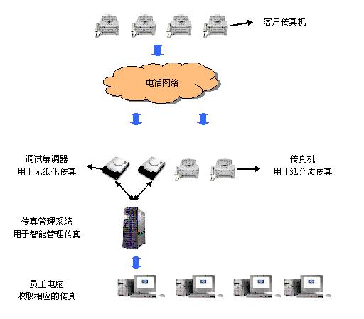 1. 智能收發(fā)傳真:按虛擬分機號轉(zhuǎn)發(fā) ,系統(tǒng)可以實時同時監(jiān)聽電話線路上的傳真,如果傳真請求到來,系統(tǒng)可以根據(jù)客戶撥打的分機號碼智能轉(zhuǎn)發(fā)到相應(yīng)的用戶收件箱中。在以前,如果客戶發(fā)傳真到公司(假設(shè)本公司的傳真號碼是1234-5678),客戶撥(1234-5678)來發(fā)送傳真,然后公司員工定時到傳真機收取傳真,造成了很大的不便。但是一旦安裝和使用了系統(tǒng),只要客戶撥相應(yīng)的后綴號碼,傳真就會自動轉(zhuǎn)送到相應(yīng)的負責(zé)員工上。例如,如果客戶撥打“1234-5678”來發(fā)送傳真,當接通了電話,在人聲提示下或直接按鍵某一個傳真信箱號碼,例如是“123”,系統(tǒng)將會找出與123號碼相對應(yīng)的用戶,智能轉(zhuǎn)發(fā)到該用戶手中,用戶只要在自己電腦即可在線收取到轉(zhuǎn)發(fā)給自己的傳真,大大提高了效率和保密性,同時也避免了大量的紙張浪費。系統(tǒng)對未能成功轉(zhuǎn)發(fā)的傳真會智能轉(zhuǎn)入“傳真大廳”,讓用戶自行人工選擇性轉(zhuǎn)發(fā)和查看。