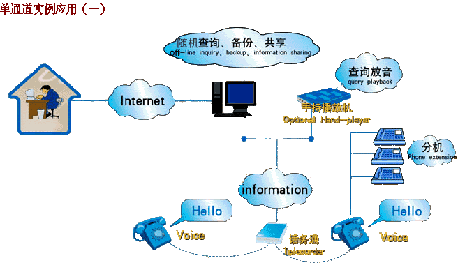 錄音記錄應(yīng)當(dāng)能夠方便地通過多種途徑回放,實現(xiàn)對錄音記錄資料的利用,這也是用戶配置電話錄音系統(tǒng)的最主要目的;胤趴梢酝ㄟ^我們公司開發(fā)生產(chǎn)的選件手持播放器回放,通過網(wǎng)絡(luò)回放,通過聲卡在其它計算機上回放等多種方式來實現(xiàn)。