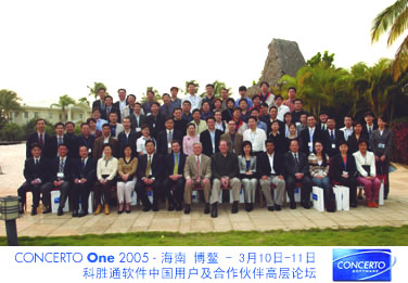2005年3月11日,在絢麗的煙火、優(yōu)雅的水上芭蕾和來(lái)自全國(guó)金融、電信、航空、政府等70多位代表的掌聲中,Concerto One - 科勝通軟件2005中國(guó)用戶(hù)及合作伙伴高層論壇于風(fēng)景如畫(huà)的海南博鰲落下帷幕。