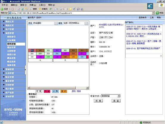 快速定位可售房間,快速察看房間銷售所處流程情況,監(jiān)控房間銷售狀態(tài)。