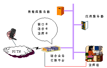 - 微機(jī)板卡方案的系統(tǒng)結(jié)構(gòu)比較簡(jiǎn)單,由于舍棄了交換機(jī),將交換、語(yǔ)音、傳真等功能都放在價(jià)格低廉的微機(jī)平臺(tái)上實(shí)現(xiàn),因此所需的初期投資較小。由于微機(jī)平臺(tái)和軟件開發(fā)的特點(diǎn),系統(tǒng)規(guī)模擴(kuò)大到一定的程度,系統(tǒng)的造價(jià)將大大增加,而且整體系統(tǒng)的性能和可靠性將受影響,出現(xiàn)不穩(wěn)定等因素。因此,此種方案適用于中、小型企業(yè)的呼叫中心。