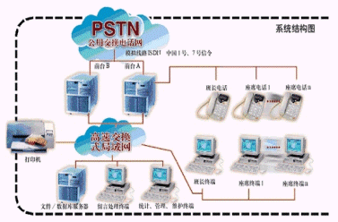 該系統(tǒng)采用微機(jī)板卡方案,在實(shí)現(xiàn)常規(guī)功能的同時(shí)與當(dāng)?shù)氐慕鸷贽k公網(wǎng)建立物理聯(lián)接,充分利用已有網(wǎng)絡(luò)資源并尊重客戶原有業(yè)務(wù)習(xí)慣及流程。