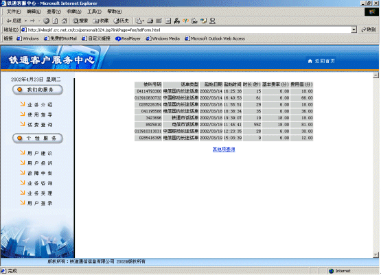 包括:公司介紹、網(wǎng)絡(luò)情況、業(yè)務(wù)介紹、受理手續(xù)、資費(fèi)標(biāo)準(zhǔn)、營業(yè)網(wǎng)點(diǎn)、電信行政法規(guī)、電信行業(yè)管理、地方性法規(guī)、電信信息及知識等內(nèi)容。