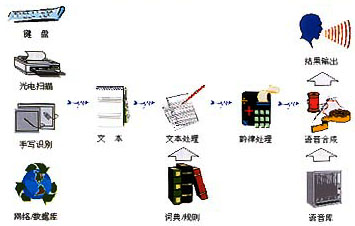 -----按照人類言語功能的不同層次,語言合成也可分成三個層次,它們是:(1)從文字到語音的合成(Text-To-Speech);(2)從概念到語音的合成(Concept-To-Speech);(3)從意向到語音的合成(Intention-To-Speech)。這三個層次反映了人類大腦中形成說話內(nèi)容的不同過程,涉及人類大腦的高級神經(jīng)活動。不難想象,即使是按規(guī)則的文字到語音合成(文語合成)也已經(jīng)是相當(dāng)困難的任務(wù)。為了合成出高質(zhì)量的語言,除了依賴于各種規(guī)則,包括語義學(xué)規(guī)則、詞匯規(guī)則、語音學(xué)規(guī)則外,還必須對文字的內(nèi)容有很好的理解,這將涉及自然語言理解的問題。從這一點(diǎn)講,文語轉(zhuǎn)換系統(tǒng)實(shí)際上也可看作一個人工智能系統(tǒng)。圖1顯示了一個完整的文語轉(zhuǎn)換系統(tǒng)示意圖。文語轉(zhuǎn)換過程是先將文字序列轉(zhuǎn)換成音韻序列,再由語音合成器生成語音波形。其中第一步涉及語言學(xué)處理,例如分詞、字音轉(zhuǎn)換等,以及一整套有效的韻律控制規(guī)則;第二步需要先進(jìn)的語音合成技術(shù),能按要求實(shí)時(shí)合成出高質(zhì)量的語音流。因此一般說來,文語合成系統(tǒng)都需要一套復(fù)雜的文字序列到音素序列的轉(zhuǎn)換程序,也就是說,文語轉(zhuǎn)換系統(tǒng)不僅要應(yīng)用數(shù)字信號處理技術(shù),而且必須有大量的語言學(xué)知識的支持。當(dāng)然其中語音合成終究還是最基本的部分,它相當(dāng)于“人工嘴巴”,任何語言合成系統(tǒng)包括文語轉(zhuǎn)換系統(tǒng),都離不開語音合成器。