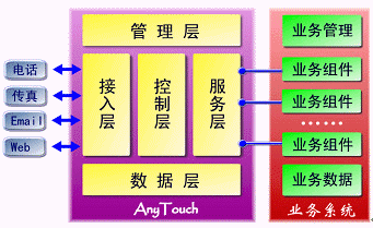 AnyTouch不僅僅是一個(gè)面向應(yīng)用開(kāi)發(fā)商、系統(tǒng)集成商的CTI中間件產(chǎn)品,而且提供支持最終用戶自我維護(hù)、開(kāi)發(fā)、編輯的業(yè)務(wù)接口與開(kāi)發(fā)工具包;贏nyTouch,可以根據(jù)不同的行業(yè)需求開(kāi)發(fā)出不同的業(yè)務(wù)應(yīng)用系統(tǒng),從而構(gòu)筑屬于自己的呼叫中心、企業(yè)增值服務(wù)、通訊服務(wù)、信息服務(wù)及CRM系統(tǒng)。