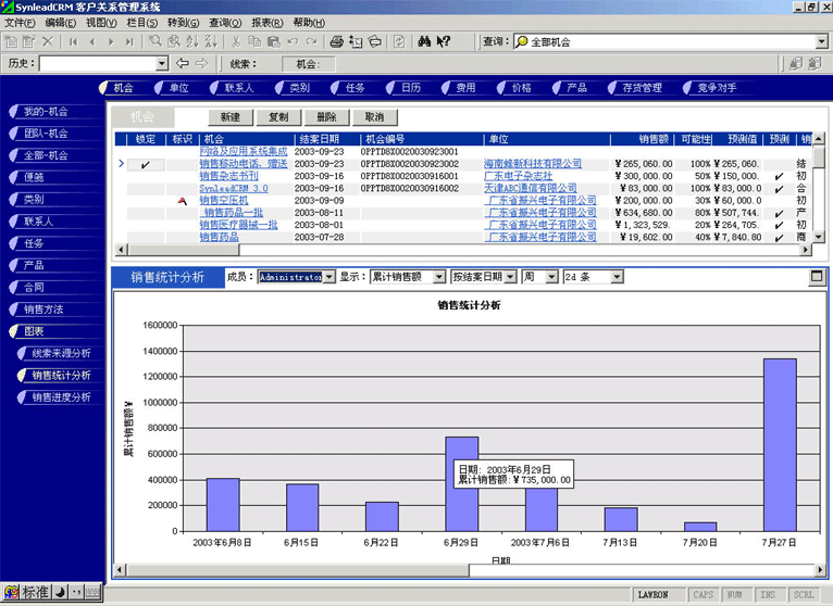 (1) 基于機(jī)會(huì)的"銷(xiāo)售分析統(tǒng)計(jì)圖表"