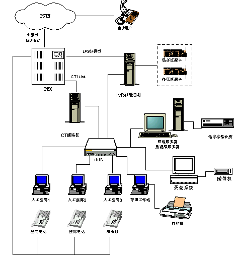 隨著九十年代電信技術(shù)和計(jì)算機(jī)技術(shù)的迅猛發(fā)展,以CTI(Computer Telephone Integration)技術(shù)為核心,將計(jì)算機(jī)網(wǎng)絡(luò)和通信網(wǎng)緊密結(jié)合起來的呼叫中心解決方案已成為第三代呼叫中心主要特征。隨著全球網(wǎng)絡(luò)技術(shù),特別是互聯(lián)網(wǎng)技術(shù)的迅猛發(fā)展,呼叫中心系統(tǒng)逐漸由普通電話走向了網(wǎng)絡(luò)技術(shù)。而CTI服務(wù)器(CTI Server)是呼叫中心的核心部件,它通過交換機(jī)的CTI Link獲取交換機(jī)的狀態(tài)并實(shí)現(xiàn)對(duì)交換機(jī)的通信。它是一個(gè)將計(jì)算機(jī)網(wǎng)絡(luò)與電話網(wǎng)緊密聯(lián)系的紐帶。CTI服務(wù)器部份包括CTI服務(wù)器(工控機(jī)/服務(wù)器)、UltraCTI呼叫控制模塊、CallMonitor呼叫管理/監(jiān)控/統(tǒng)計(jì)模塊、UltraCDR呼叫數(shù)據(jù)記錄模塊。