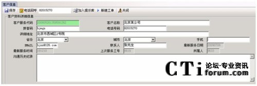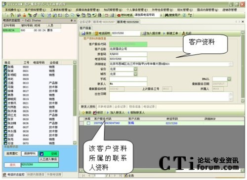 當(dāng)有電話來(lái)電時(shí),系統(tǒng)顯示來(lái)電號(hào)碼及來(lái)電人員的客戶(hù)資料信息;