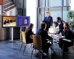 ·同時(shí),視頻會議系統(tǒng)具有投影、VGA端口以及數(shù)據(jù)流功能可以隨時(shí)增加會議代表甚至召開全體會議?偛繘Q策可即時(shí)傳達(dá)到所有員工。