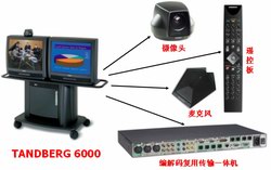 會議系統(tǒng)的組成非常簡單,每個(gè)會場安放一臺視頻會議終端,終端接上電視機(jī)作為回顯設(shè)備、接上網(wǎng)絡(luò)作為傳輸媒介就可以了。一臺終端通常有一臺核心編解碼器、一個(gè)攝像頭,一個(gè)全向麥克風(fēng)以及一個(gè)遙控器。核心編解碼將攝像頭和麥克風(fēng)輸入的圖像及聲音編碼通過網(wǎng)絡(luò)傳走,同時(shí)將網(wǎng)絡(luò)傳來的數(shù)據(jù)解碼后將圖像和聲音還原到電視機(jī)和音響上,即實(shí)現(xiàn)了與遠(yuǎn)端的實(shí)時(shí)交互。終端通過呼叫IP地址或ISDN號碼進(jìn)行連接(專線無需撥號)。但在有三點(diǎn)會場就必須采用MCU(視頻會議多點(diǎn)控制單元)進(jìn)行管理。