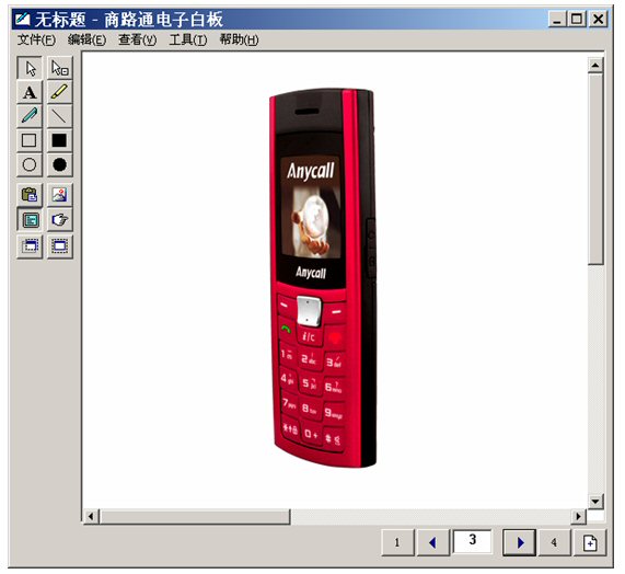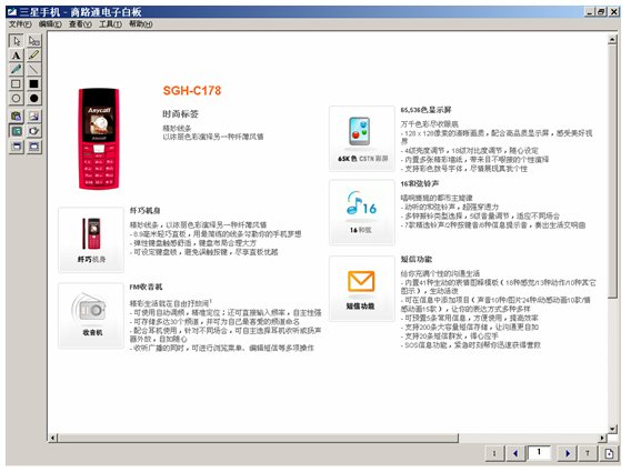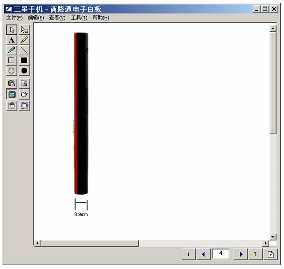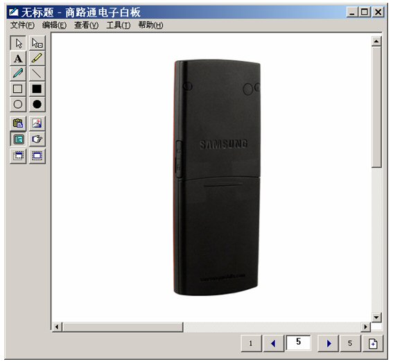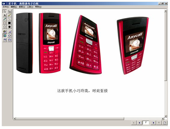 坐席進(jìn)入富媒體知識(shí)庫(kù),調(diào)出三星手機(jī),啟動(dòng)電子白板,將這個(gè)畫(huà)面推送給客戶(hù)。