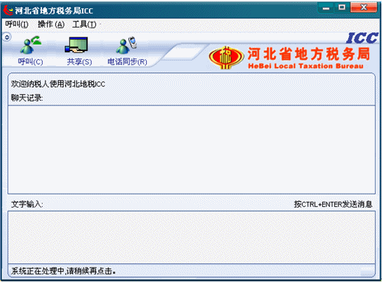 如要掛斷后重新呼叫,請(qǐng)稍等片刻再重新呼叫。如果過(guò)早重新點(diǎn)擊共享按鈕,ICC界面左下角狀態(tài)欄文字提示“系統(tǒng)正在處理中,請(qǐng)稍后再點(diǎn)擊”?吹酱颂崾,請(qǐng)稍候再點(diǎn)擊呼叫按鈕。如下圖所示: