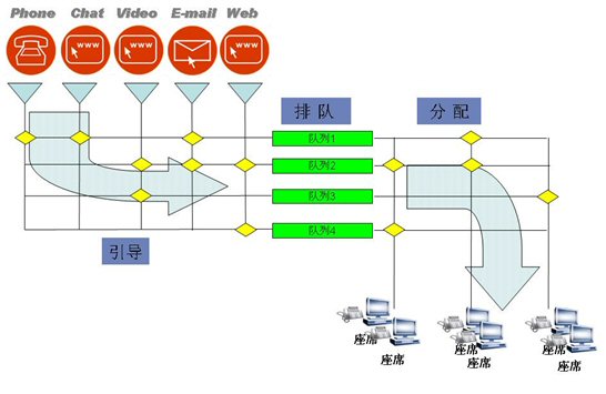 可運(yùn)營(yíng)的第五代呼叫中心,商路通在ACD的處理方面,采用雙矩陣的ACD機(jī)制。形式如下: