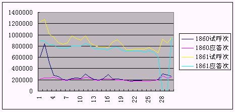 圖二 新1861系統(tǒng)上線前后試呼次數(shù)和應(yīng)答次數(shù)比較