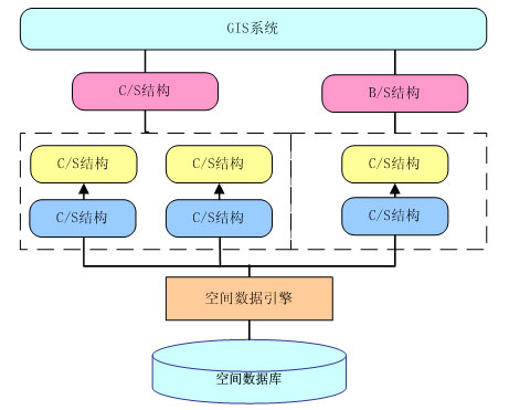 GIS應用劃分成基于C/S結構的應用和基于B/S結構的應用兩種。前一種結構適用于實現(xiàn)數(shù)據(jù)的采集、入庫、編輯和復雜的空間分析、專題制圖等應用,主要是面向數(shù)據(jù)維護人員和專業(yè)分析人員使用的,以及為領導和專家提供輔助決策和分析之用;而后一種結構比較適合于實現(xiàn)簡單的地圖發(fā)布、空間查詢等應用,主要面向的是廣大的Internet用戶。由于這兩種結構各有優(yōu)缺點,而從指揮中心的總體角度來看,兩種結構的應用都是不可缺少的。系統(tǒng)的總體結構將是一個同時包含了C/S和B/S兩種結構的混合型、綜合型結構。系統(tǒng)結構如下: