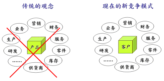 在CRM系統(tǒng)架構(gòu)中,如何持續(xù)和客戶保持好關(guān)系、進(jìn)而提高客滿意度是最主要目標(biāo)之一,也是客戶關(guān)系管理架構(gòu)的核心價(jià)值所在。現(xiàn)在企業(yè)的競爭模式已經(jīng)從以往以產(chǎn)品為中心的思考模式,轉(zhuǎn)變到以客戶為中心的思考模式。(如圖一)
