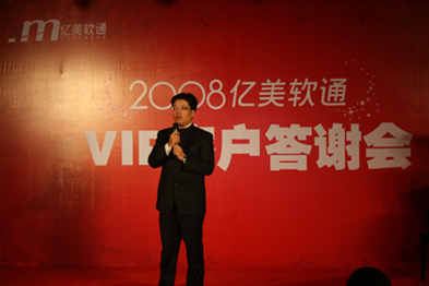 2008年12月29日,在港澳中心舉辦的2008億美軟通VIP客戶答謝會圓滿結(jié)束,參會的嘉賓客戶和合作伙伴是來自IT行業(yè)、金融行業(yè)、品牌服務(wù)業(yè)等各行業(yè)的優(yōu)秀企業(yè)的領(lǐng)導(dǎo)和代表,他們分別是:中國通信企業(yè)協(xié)會增值業(yè)務(wù)委員會、GOOGLE(中國)投資有限公司、微軟(中國)投資有限公司、百度公司、網(wǎng)易公司、TOM公司、凡客誠品、中信銀行、工銀瑞信基金管理有限公司、泰達荷銀基金管理有限公司、新東方教育集團、上海思創(chuàng)服飾有限公司、樂友達康、神州數(shù)碼斯特其股份、青鳥健身、龐大汽貿(mào)集團、北京高校畢業(yè)生就業(yè)指導(dǎo)中心、國政通網(wǎng)絡(luò)科技有限公司、中寬網(wǎng)信公司。