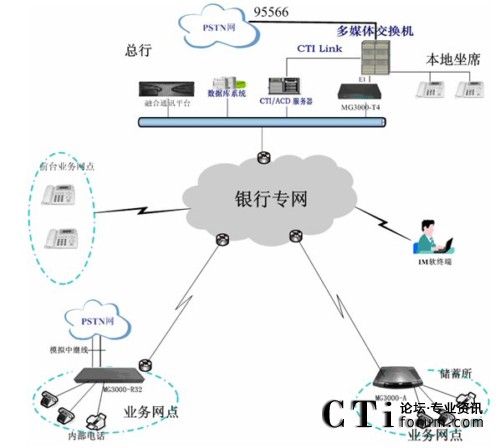 在下面各理財中心、營業(yè)網(wǎng)點、儲蓄所部署IP語音終端設備,IP語音終端負責下面各營業(yè)網(wǎng)點的IP專線電話的接入、辦公電話接入。