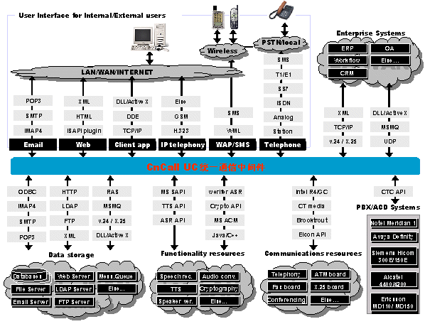 UC統(tǒng)一通信平臺是建立企業(yè)客戶通信解決方案的理想開發(fā)平臺。無論是基于PC的PBX, 多媒體聯(lián)絡(luò)中心,統(tǒng)一消息系統(tǒng),IP網(wǎng)關(guān)還是IVR系統(tǒng),電子商務(wù)網(wǎng)站自動化,Email