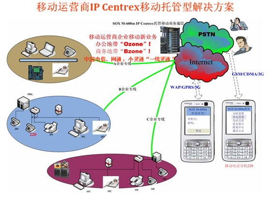 從美國(guó)人貝爾1876年發(fā)明電話一百多年來(lái),當(dāng)電話進(jìn)入企業(yè)辦公后,企業(yè)利用電話通信技術(shù)為企業(yè)的經(jīng)營(yíng)帶來(lái)了溝通協(xié)作的高效率,傳統(tǒng)PSTN電話網(wǎng)絡(luò)的時(shí)代企業(yè)都是自購(gòu)和部署傳統(tǒng)的PBX(私有交換系統(tǒng)或集團(tuán)電話系統(tǒng))或采用PSTN固網(wǎng)運(yùn)營(yíng)商提供的CENTREX(匯線通,集線通)來(lái)滿足企業(yè)對(duì)外的總機(jī)和內(nèi)部分機(jī)之間通信的需要、到了移動(dòng)通信的時(shí)代,也就是前兩年移動(dòng)運(yùn)營(yíng)商(中國(guó)移動(dòng)、中國(guó)聯(lián)通)為了開發(fā)企業(yè)的通信市場(chǎng)推出了我們稱為“第一代的移動(dòng)總機(jī)”或“商務(wù)總機(jī)”。而IP互聯(lián)網(wǎng)前幾年的迅速發(fā)展以及NGN下一代網(wǎng)絡(luò)發(fā)展逐漸成熟并開始進(jìn)入商用,F(xiàn)MC(Fixed-mobile convergence)固定-移動(dòng)融合通信將是未來(lái)3-5年網(wǎng)絡(luò)的發(fā)展目標(biāo)。電信網(wǎng)絡(luò)的變化包括業(yè)務(wù)網(wǎng)、控制網(wǎng)、承載網(wǎng)、接入網(wǎng)和終端等各個(gè)層面,運(yùn)營(yíng)商的市場(chǎng)定位和商業(yè)模式也會(huì)隨之改變,而企業(yè)通信市場(chǎng)的總機(jī)和辦公分機(jī)也開始從傳統(tǒng)的模式進(jìn)入融合移動(dòng)通信的新模式時(shí)代,這個(gè)新模式就是我們稱為的“第二代移動(dòng)總機(jī)或商務(wù)總機(jī)”,融合通信將為企業(yè)通信創(chuàng)造更多的溝通價(jià)值。