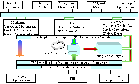 Force Automation,Marketing Automation,Service Operation;以及后端的DataWareHouse/BI,ERP及原有集成應(yīng)用系統(tǒng)(Legacy