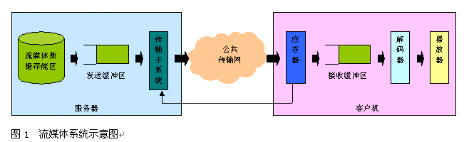 實時自適應(yīng)網(wǎng)絡(luò)帶寬的流媒體傳送技術(shù),是上海清鶴數(shù)碼科技公司的一項可大幅提高流媒體寬帶傳送過程中的關(guān)鍵服務(wù)質(zhì)量瓶頸的國際技術(shù)專利。我們知道,目前制約流媒體寬帶應(yīng)用發(fā)展的核心問題在于服務(wù)質(zhì)量。簡單地說,由于因特網(wǎng)的狀況是不可靠的,其帶寬、負(fù)荷等變化劇烈,這難以滿足流媒體寬帶業(yè)務(wù)的實時性服務(wù)質(zhì)量要求,并常常造成播放卡殼、延遲、視頻質(zhì)量抖動劇烈等不良情況,給使用者感官造成很大影響。所以解決好流媒體寬帶應(yīng)用的服務(wù)質(zhì)量問題對于流媒體寬帶應(yīng)用是極為重要的。如圖1所示,在一般的流媒體寬帶系統(tǒng)里,視頻服務(wù)器通過網(wǎng)絡(luò)向客戶機(jī)實時傳送流媒體信息。