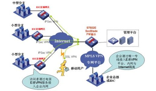 企業(yè)專(zhuān)網(wǎng)作為企業(yè)內(nèi)部信息分享的重要通道,已經(jīng)成為提升工作效率的關(guān)鍵。但由于企業(yè)專(zhuān)網(wǎng)前期投資巨大、建設(shè)速度遠(yuǎn)落后于企業(yè)發(fā)展速度,因此以租賃形式為主的VPN業(yè)務(wù)漸漸興起。上海電信作為國(guó)內(nèi)領(lǐng)先的運(yùn)營(yíng)商,與業(yè)界領(lǐng)先的IToIP解決方案提供商H3C的合作,推出的“E通VPN”品牌業(yè)務(wù),提供“網(wǎng)絡(luò)+安全+服務(wù)+Qos”綜合信息服務(wù),受到了企業(yè)用戶(hù)的廣泛歡迎。