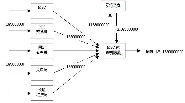 - 彩話平臺在收到“彩話平臺號碼前綴+原被叫號碼”的呼叫后,分析出業(yè)務(wù)用戶(被叫號碼),在彩話平臺上進(jìn)行相關(guān)的業(yè)務(wù)處理,然后在被叫號碼前加一個另外的號碼前綴(稱作“接通被叫指示前綴”),被叫號碼成了“前綴2+原被叫號碼”(避免被叫端局的二次觸發(fā)),彩話平臺把這個新被叫號碼接續(xù)回到被叫交換機(jī);