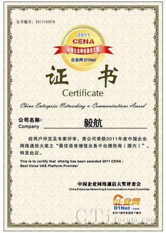 毅航通信榮獲”中國企業(yè)網(wǎng)絡(luò)通信大獎(jiǎng)“