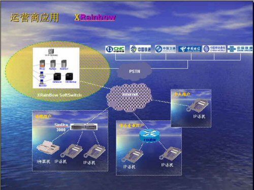 。。如果將Xrainbow系統(tǒng)接入北京的PSTN落地,則各分支機(jī)構(gòu)就可以通過(guò)系統(tǒng)平臺(tái)撥打北京的其他電話,收取的只是市話費(fèi)用。