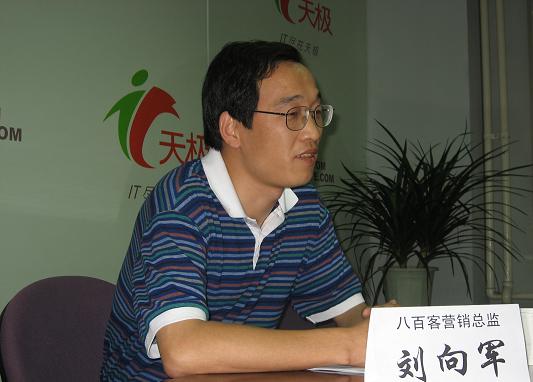 主持人:各位朋友歡迎大家收看第二十六期的e領(lǐng)袖對(duì)話,今天我們請(qǐng)來(lái)的嘉賓是八百客營(yíng)銷總監(jiān)劉向軍先生,謝謝您的光臨。