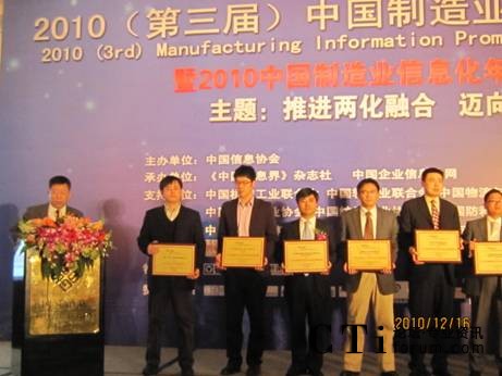 CTI論壇(ctiforum)12月27日消息(記者 潘婷婷):12月16日,由中國(guó)信息協(xié)會(huì)聯(lián)合我國(guó)十幾家制造業(yè)行業(yè)協(xié)會(huì)共同舉辦的“2010(第三屆)中國(guó)制造業(yè)信息化推進(jìn)大會(huì)暨中國(guó)制造業(yè)信息化年度頒獎(jiǎng)盛典”在北京成功舉行。中國(guó)信息協(xié)會(huì)會(huì)長(zhǎng)盧時(shí)徹、中國(guó)機(jī)械工業(yè)聯(lián)合會(huì)特別顧問(wèn)、國(guó)家信息化專(zhuān)家咨詢(xún)委員會(huì)委員朱森第、工業(yè)和信息化部信息化推進(jìn)司安筱鵬等領(lǐng)導(dǎo)出席此次活動(dòng)并發(fā)表演講。會(huì)上,八百客獲得“2010年度CRM領(lǐng)軍企業(yè)”大獎(jiǎng),至此,八百客已經(jīng)斬獲“中國(guó)云計(jì)算領(lǐng)軍企業(yè)”和“CRM領(lǐng)軍企業(yè)”雙料大獎(jiǎng),為2010年畫(huà)上了圓滿(mǎn)的句號(hào)。