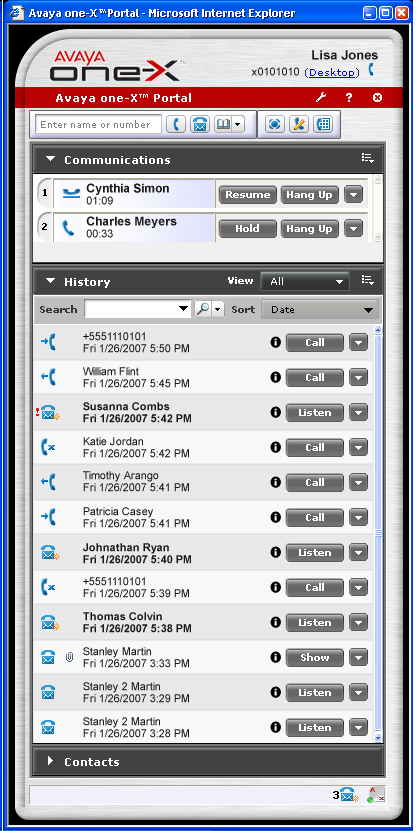 統(tǒng)一通信市場(chǎng)正在步入新的發(fā)展階段,新的產(chǎn)品與方案逐漸面世。在不久前舉行的全球企業(yè)通信盛會(huì)美國VoiceCon上, Avaya推出了全新的one-X Portal, 進(jìn)一步把統(tǒng)一通信從理念帶向?qū)嶋H應(yīng)用。 Avaya one-X Portal能夠讓員工通過基于網(wǎng)絡(luò)的界面,簡便安全地使用各種通信功能,包括語音通信、消息管理、移動(dòng)辦公和會(huì)議等等。通過簡便、創(chuàng)新的方式,這個(gè)方案讓使用者從桌面電腦獲得統(tǒng)一通信的全部功能,從而提高了效率、管理能力和業(yè)務(wù)連續(xù)性。