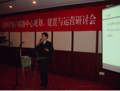 2點(diǎn)整,主持人宣布會(huì)議正式開(kāi)始。首先是正音科技公司執(zhí)行副總秦裕農(nóng)先生致開(kāi)幕詞。秦先生從2000多年前的周幽王烽火戲諸侯娓娓道來(lái),一直講到IP技術(shù)在音頻、視頻上的應(yīng)用,為大家生動(dòng)形象地描述了通訊技術(shù)發(fā)展的歷程。在演講的最后,秦先生指出了一個(gè)客戶聯(lián)絡(luò)中心所應(yīng)該具備的特性:"在這個(gè)客戶聯(lián)絡(luò)中心里,客戶應(yīng)該能夠隨時(shí)隨地的通過(guò)電話、傳真、郵件、網(wǎng)絡(luò)電話、文字聊天、web協(xié)同等各種各樣的方式,第一時(shí)間找到企業(yè),解決他們的問(wèn)題;在這個(gè)客戶聯(lián)絡(luò)中心里,企業(yè)能夠廉價(jià)地把分布于全國(guó)各地的服務(wù)資源聯(lián)系起來(lái),進(jìn)行統(tǒng)籌管理,統(tǒng)一為客戶提供服務(wù);在這個(gè)客戶聯(lián)絡(luò)中心里,企業(yè)可以隨時(shí)把一個(gè)空閑的客戶服務(wù)人員調(diào)整為電話銷(xiāo)售人員,而不用去修改復(fù)雜系統(tǒng)設(shè)置;在這個(gè)客戶聯(lián)絡(luò)中心里,任何一個(gè)可以接入互聯(lián)網(wǎng)的員工,不管他身在地球的哪一個(gè)角落,都可以隨時(shí)隨地的接入系統(tǒng),變成一個(gè)坐席,為客戶提供專業(yè)的服務(wù)。"秦先生描述的這個(gè)完美的客戶聯(lián)絡(luò)中心立即博得了陣陣掌聲,同時(shí)也引起了與會(huì)者的極大興趣,如何才能實(shí)現(xiàn)這個(gè)猶如夢(mèng)中的呼叫中心呢?"相信通過(guò)今天的研討會(huì),各位會(huì)得到了一個(gè)滿意的答案",秦先生最后自信的向大家保證。