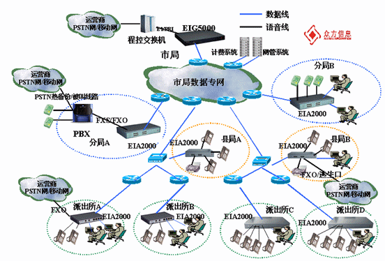 公安系統(tǒng)作為一家話務量較大的國家職能部門,平時各個分局,各個派出所之間及上下級之間的電話、傳真等交流非常多,每月支付的話費數目相當可觀,公安部門急需找到一種價格更便宜、服務更周到,同時使用便捷的通話解決方案,以降低辦公費用,提高工作效率。采用了深圳眾方信息的VoIP解決方案,能使得公安部門整體話費節(jié)省了至少50%以上,而且能實現(xiàn)多種業(yè)務的綜合處理,包括語音、數據、視頻、圖像等。