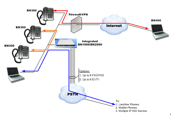 寶諾SipEverest VoIP組網(wǎng)方案三:新區(qū)部署