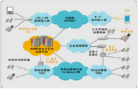 中寬網信在美國率先開發(fā)成功的新一代網絡電話交換系統是基于最新的VoIP分組語音協議和世界領先的軟交換技術,以用戶局域網、寬帶接入網、互聯網和傳統PSTN電話網絡融合組網的一種高質量數字寬帶通信平臺。它代表了未來電信網絡和業(yè)務的發(fā)展趨勢;支持和推進下一代網絡(NGN)的平滑演進。該系統不僅可以提供傳統電話的各種業(yè)務,還可以提供語音與互聯網的各種業(yè)務,包括點擊撥號、語音郵件、視頻通信和特色服務如及時消息、號碼移動、一卡通等各種新型的增值業(yè)務。