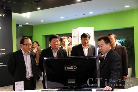 CTI論壇(ctiforum)3月29日消息(記者 潘婷婷):3月11日下午,上海市副市長艾寶俊、市經(jīng)信委主任王堅(jiān)、市經(jīng)信委軟件和信息服務(wù)業(yè)處處長朱宗堯等一行人專程來北京云基地,在寬帶資本董事長田溯寧、云基地公司董事長趙安建等人的陪同下對云基地進(jìn)行了參觀和考察。