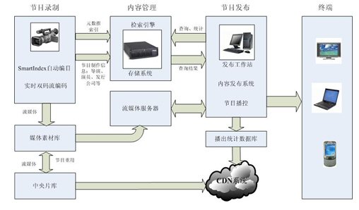 農(nóng)村黨員干部現(xiàn)代遠程教育系統(tǒng)是涉及多個層面的系統(tǒng)工程,基礎(chǔ)設(shè)施建設(shè)內(nèi)容主要包括:節(jié)目制作平臺、中心資源庫、節(jié)目發(fā)布平臺、信息管理系統(tǒng)、接收終端等部分。該方案基于全球最成熟的寶麗星通軟件(北京)有限公司研發(fā)的寶麗通流媒體支撐平臺,具備在現(xiàn)有網(wǎng)絡(luò)基礎(chǔ)架構(gòu)上開展豐富多彩的面向農(nóng)村黨員和農(nóng)民用戶的視聽類的綜合信息服務(wù)。系統(tǒng)結(jié)構(gòu)如下圖所示。