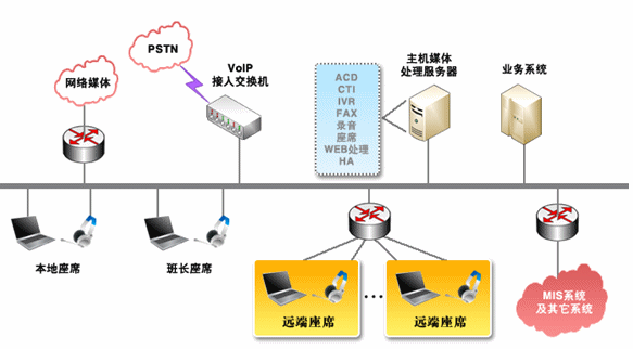 我們可以非常明確的一點是:采用分布式座席的技術,使得遠端座席與中心座席除了地域上的差異,其它部分完全相同?梢哉f只要網(wǎng)絡無極限,座席分布就是無極限的。