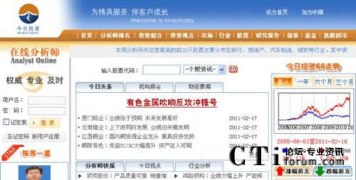 深圳今日投資財經(jīng)資訊有限公司是一家致力于為投資者提供專業(yè)證券數(shù)據(jù)統(tǒng)計和個性化證券資訊的服務提供商。今日投資按照國際標準對70余家券商研究所,1800名一線分析師的研究成果進行深入加工和數(shù)據(jù)提煉,經(jīng)過多年的積累,建立了國內最早、最全、最專業(yè)的證券投資分析數(shù)據(jù)庫,并充分借鑒國內外先進的投資方法,獨創(chuàng)出三眼投資統(tǒng)計分析法,分別從基本面、技術面、機構認同度三個方面,對個股、行業(yè)、市場進行各種綜合數(shù)據(jù)統(tǒng)計和研究分析,依托強大的網(wǎng)絡資源和合作渠道,通過互聯(lián)網(wǎng)、移動互聯(lián)網(wǎng)、手機增值業(yè)務、雜志媒體、電視媒體、廣播電臺等渠道為投資者提供各具特色的專業(yè)數(shù)據(jù)統(tǒng)計和個性化證券資訊服務。目前今日投資的產品有:在線分析師、好股網(wǎng)、金融E家、上市公司市值管理系統(tǒng)、手機炒股系統(tǒng)、行情分析師、基金經(jīng)理調查、證券導刊等。