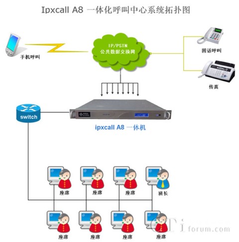 ipxcall A8呼叫中心融合IP-PBX和傳統(tǒng)呼叫中心功能于一體,采用先進的計算機電話集成技術(shù),結(jié)合客戶的當(dāng)前業(yè)務(wù)和未來業(yè)務(wù)發(fā)展的實際情況,協(xié)助用戶快速建立一個功能全、易使用、易維護的一體化呼叫中心。