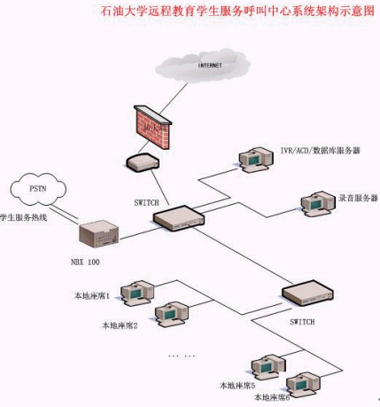 石油大學(xué)成人(網(wǎng)絡(luò))教育學(xué)院,現(xiàn)有在校函授夜大學(xué)本專科生9500多人,網(wǎng)絡(luò)教育本?粕17500多人,全日制在校生1800多人,年培訓(xùn)2000多人次,選送留學(xué)生100多人。鑒于成人(網(wǎng)絡(luò))學(xué)院辦學(xué)的特點(diǎn),學(xué)生服務(wù)的工作更加顯現(xiàn)。學(xué)院內(nèi)部千兆數(shù)據(jù)網(wǎng)已連通,現(xiàn)在要搭建的是語音平臺能與其其他業(yè)務(wù)系統(tǒng)連接,并可充分利用現(xiàn)有的資源,使語音和數(shù)據(jù)實(shí)現(xiàn)整和,建立一套先進(jìn)的呼叫中心系統(tǒng)來受理學(xué)生服務(wù)業(yè)務(wù),既可提高業(yè)務(wù)處理效率,又能節(jié)約運(yùn)營成本。