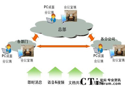 同時(shí)支持語(yǔ)音、視頻、文本通信及文檔共享、桌面共享、白板操作、網(wǎng)頁(yè)共享等協(xié)用手段