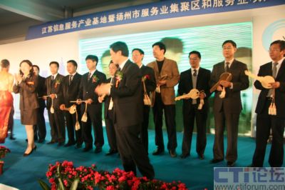 4月21日,江蘇信息服務產(chǎn)業(yè)基地暨揚州市服務業(yè)集聚區(qū)和服務業(yè)項目推介洽談會在江蘇信息服務產(chǎn)業(yè)基地(揚州)隆重召開,省信息產(chǎn)業(yè)廳副廳長龔懷進、揚州市委常委、常務副市長張京霞為省信息安全技術中心揭牌,中國網(wǎng)通集團公司總工程師滕勇,神州數(shù)碼高級副總裁陳勇,上海萬得信息股份董事長陸風等數(shù)十位集團公司老總現(xiàn)場祝賀,同時IBM、AVAYA、優(yōu)勝資訊、神州數(shù)碼等60多家企業(yè)現(xiàn)場簽定了投資合作協(xié)議,而華潤通信、中國電信、酒店無憂、漢世紀等10家企業(yè)則從廣陵區(qū)委書記孔令俊手中接過了入駐金鑰匙,成為首批入駐江蘇信息服務產(chǎn)業(yè)基地的企業(yè),至此江蘇信息服務產(chǎn)業(yè)基地迎來首發(fā)項目招商的“開門紅”,江蘇信息服務產(chǎn)業(yè)基地也因此被業(yè)界冠以中國首家專業(yè)定位信息呼叫和數(shù)據(jù)處理產(chǎn)業(yè)的“中國聲谷”的美譽。 “江蘇信息服務產(chǎn)業(yè)基地(揚州)”位于廣陵新城內,為省信息產(chǎn)業(yè)廳與揚州市政府聯(lián)手打造的中國首家專業(yè)定位于呼叫信息和數(shù)據(jù)處理產(chǎn)業(yè)的省級信息服務業(yè)基地,占地2.52平方公里,總投資50億元,處于揚州ECBD核心區(qū)域,交通便捷,區(qū)位優(yōu)勢獨特,生態(tài)環(huán)境優(yōu)美。基地按照“產(chǎn)業(yè)社區(qū)”的標準和“商務公園”的理念規(guī)劃建設,重點發(fā)展信息服務產(chǎn)業(yè)及具有揚州特色的城市信息化應用軟件和嵌入式軟件產(chǎn)業(yè),立足長三角、面向全國、服務世界,逐步發(fā)展成為全國乃至世界呼叫中心產(chǎn)業(yè)最佳實踐基地、全國生產(chǎn)性服務業(yè)的標桿示范基地及呼叫中心人才培訓與派遣基地。