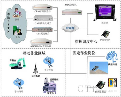 MDS系統(tǒng)可以應(yīng)用于各種作業(yè)現(xiàn)場的指揮調(diào)度, MDS系統(tǒng)不但支持系統(tǒng)基本的語音通信,調(diào)度中心可以通過視頻、數(shù)據(jù)、文本消息等綜合的多媒體方式與作業(yè)人員進(jìn)行通信交互,滿足各種復(fù)雜環(huán)境下的指揮調(diào)度需求。系統(tǒng)可以通過GS8無線網(wǎng)關(guān)、GA90